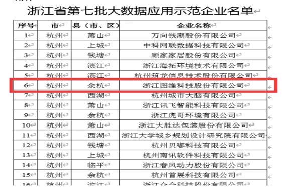 浙江省經信和信息化廳為推進大數據技術、應用和產業創新發展要求,在企業自主申報和經各市經信局初審、專業技術領域專家評審,省經信廳確定我司為浙江省第七批大數據應用示范企業。