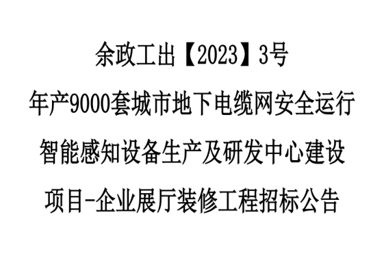余政工出【2023】3號年產9000套城市地下電纜網安全運行智能感知設備生產及研發中心建設項目-企業展廳裝修工程招標公告