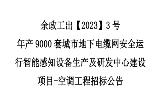 余政工出【2023】3號年產9000套城市地下電纜網安全運行智能感知設備生產及研發中心建設項目-空調工程招標公告
