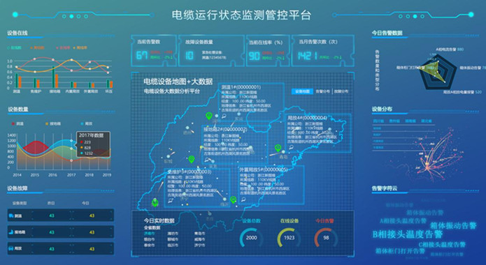 電纜運(yùn)行狀態(tài)感知數(shù)據(jù)全景交互、缺陷智能預(yù)警、故障智能診斷、智能輔助決策等,提升電纜線路智能化管理水平,實(shí)現(xiàn)電纜狀態(tài)評價和全壽命周期管理。