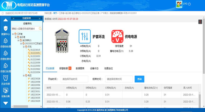 電纜運(yùn)行狀態(tài)數(shù)據(jù)圖表、曲線等多模式展示,實(shí)時預(yù)警等功能